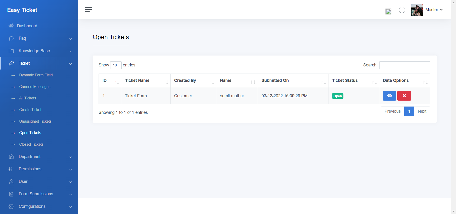 Click on the Open ticket from the sidebar, and when you click on it, it will show all the tickets whose status is open, When you click on the open ticket you have UI like the something below.